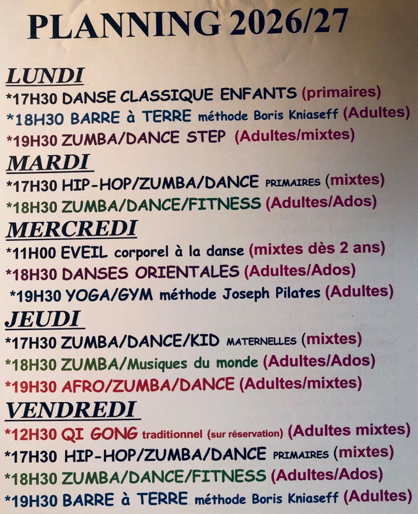 ENFANTS ET ADOS les cours se règlent la 1ière semaine du mois
